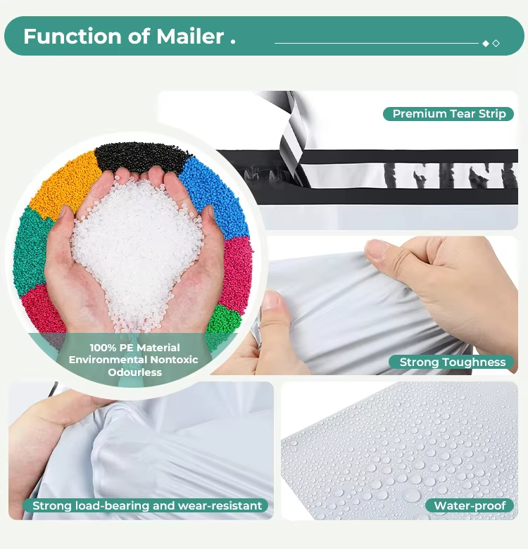 Premium Customized Self-adhesive 0.5 Mil Recyclable Envelope Hard-wearing Recoverable Plastic PolyMailer Bags Custom Logo Size
